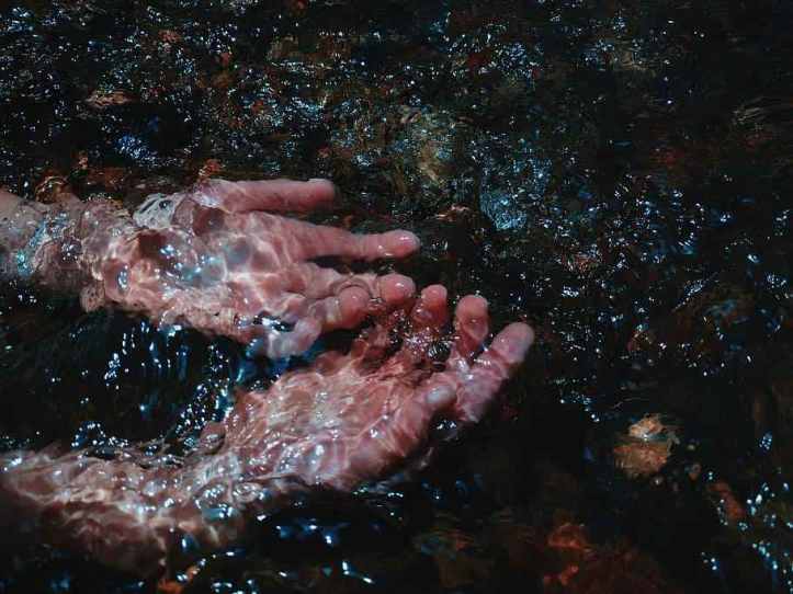 It’s solid on the bank, no quicksand. There are hand-shaped prints left by raccoons. There is nobody else here except the deer who flee so fast they appear to vanish. I go up, over the fallen maple that is slowly being consumed by fungus. I stand on it so I can look ahead. There she is, my love, the river. Brown and lean, stretching across the green, slithering under the blossom-fingered bushes that make little eddies and ripples on her skin.