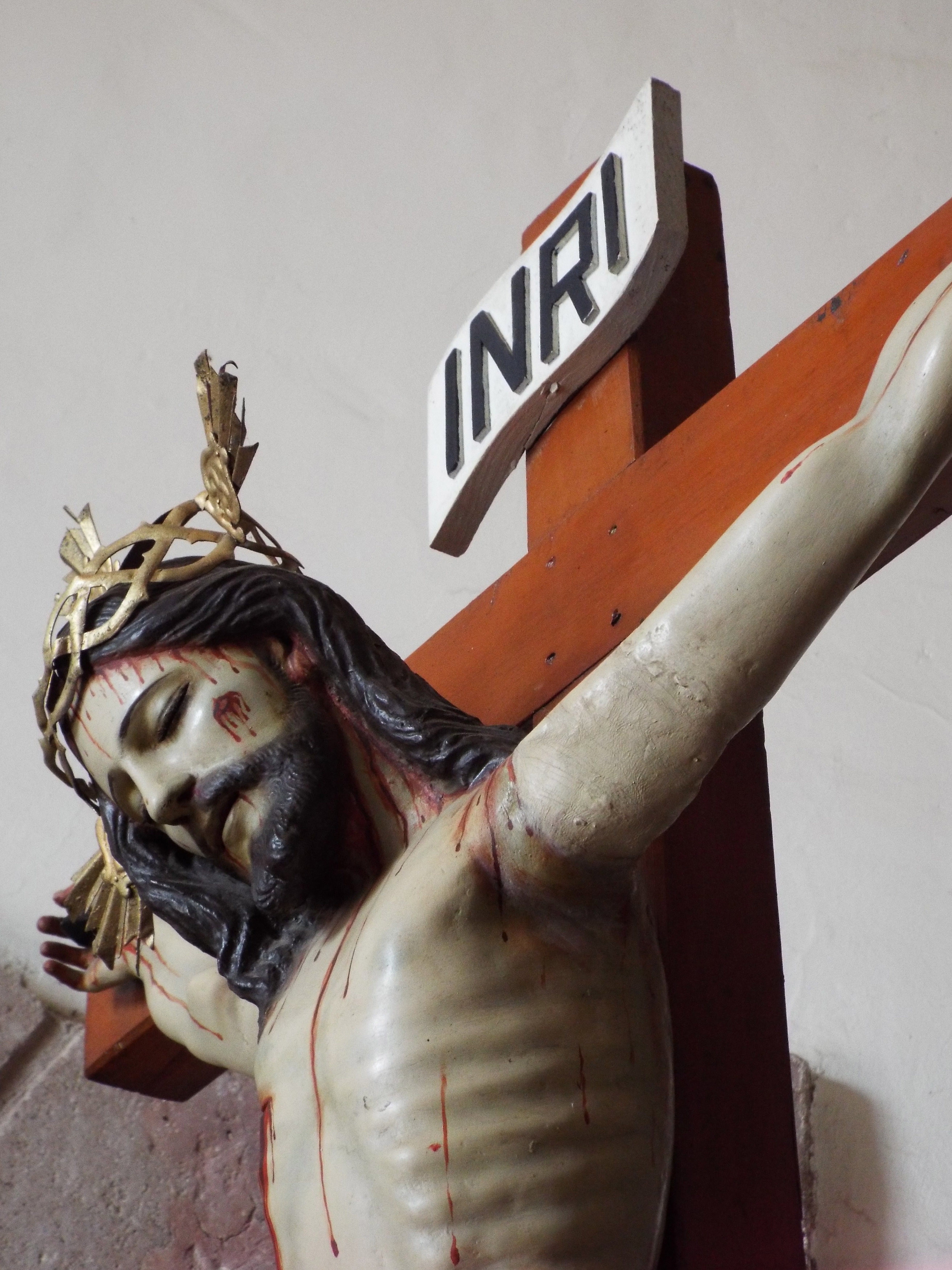 Jesus glued to the wood with sad