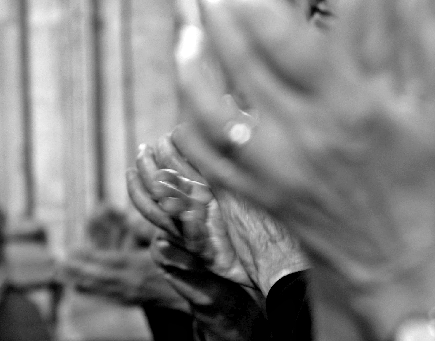 Image: Cycle of Songs Launch at Great St Mary’s 168 hands clapping, by Historyworks, CC BY 2.0, via Flickr.com. Modified by Veronica McDonald.