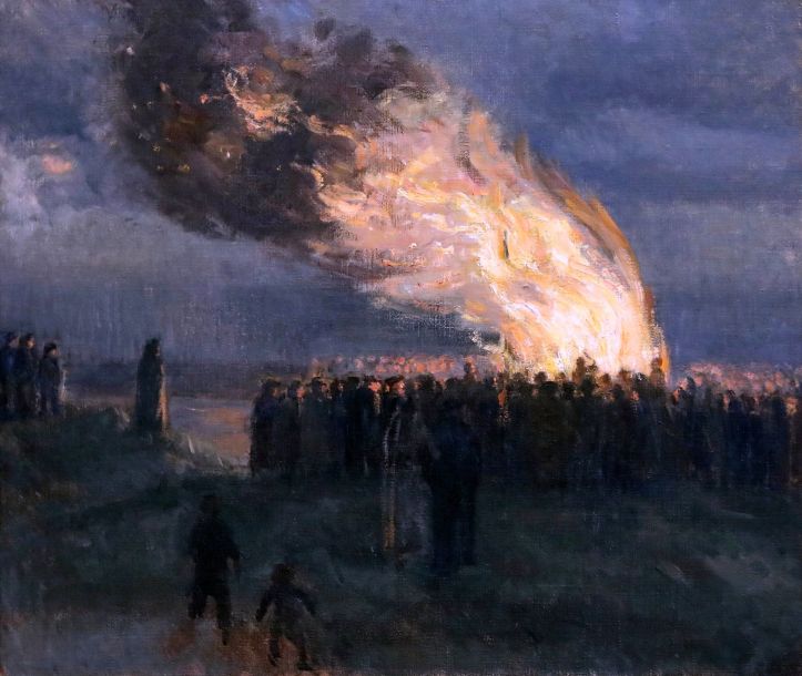 Artwork: Sankt Hansaften på Skagen. Måne bag Skyer (Midsummer’s Eve at Skagen. The Moon Behind Clouds) by Helga Ancher, 1948. Flickr.com.