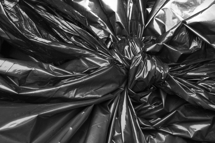 open-mouthed garbage bag black at my side