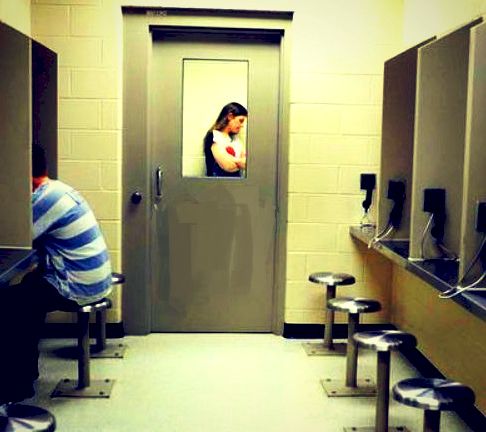 I finally take my attention off the cuffs and see his face. He looks terrified of me, and I instantly feel the urge to throw the phone down and run. Run back out through the layers of security, past the mile-high gate that greeted me just minutes ago, and into the comfort of my car. I cannot leave him though, not yet.
