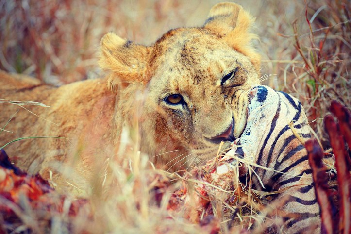 Photo Credit: “Lion eating a zebra, National park of Kenya, Africa” by VOLODYMYR BURDIAK, Wikimedia Commons. Modified by Veronica McDonald.