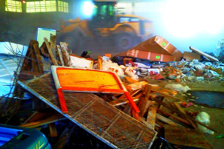 amidst scraps of metal and broken chairs—